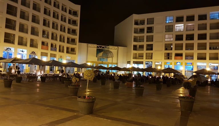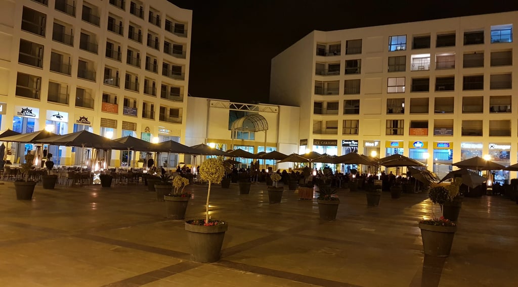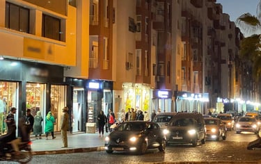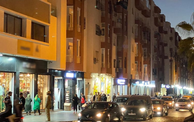 À Agadir, de nombreux bâtiments combinent commerces en rez-de-chaussée et logements aux étages.