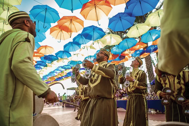 Les arts populaires ont enflammé les soirées d’AZUL. Des musiciens gnawas aux tambours urbains, des groupes d’ahwach aux poètes rways, tous ont partagé leur énergie face à un public ébloui, sous le charme de ces arts vivants hauts en couleurs.