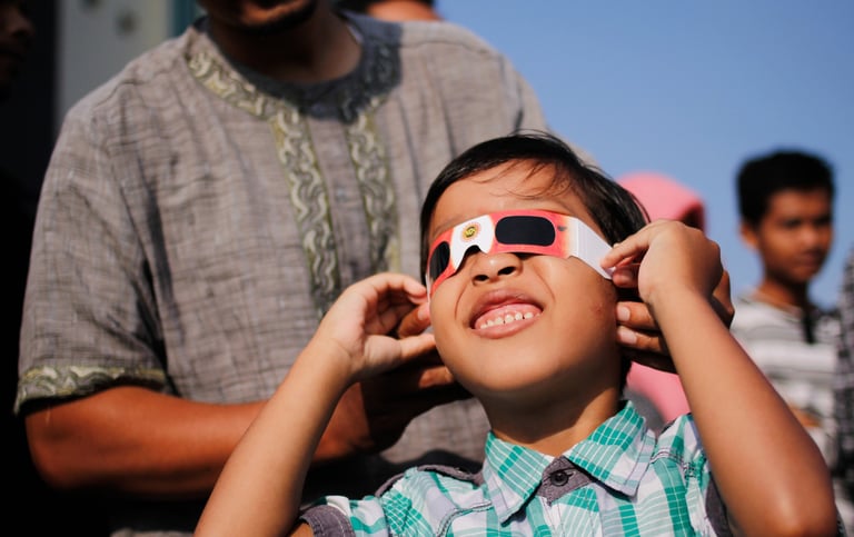 Pour profiter pleinement de ce spectacle en toute sécurité, il est essentiel d'utiliser des lunettes spéciales « éclipse », spécifiquement conçues pour filtrer les rayons ultraviolets et infrarouges du Soleil. Une observation directe du soleil sans protection adéquate peut causer des lésions oculaires graves et irréversibles.