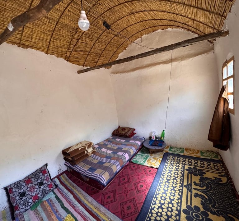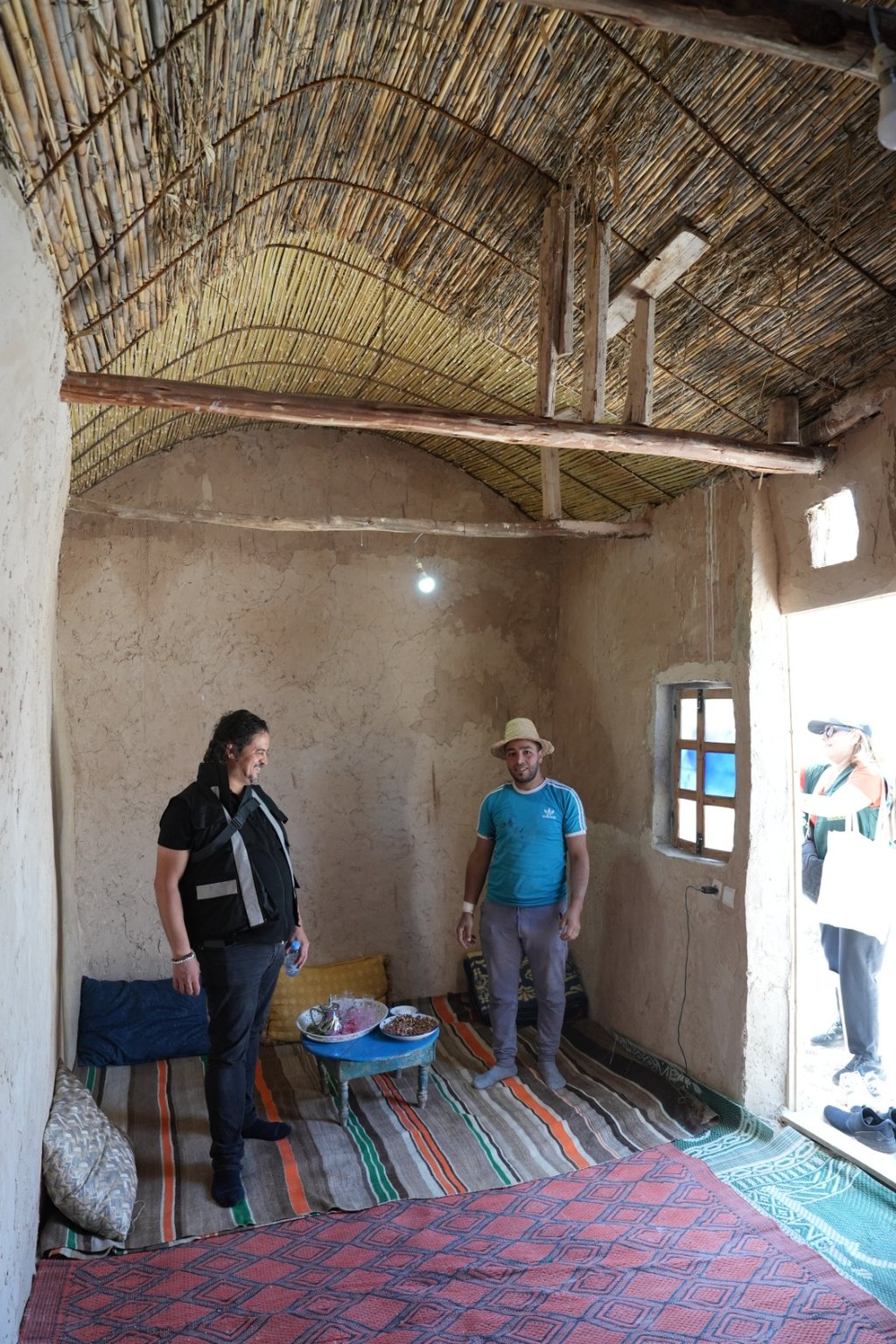 Intérieur de la Douira, construite par Amal Biladi après le séisme du 8 septembre 2023, Douar Ait Bourd, commune Amezmiz, Province Al Haouz 18m2 de superficie, 3 mètres de hauteur