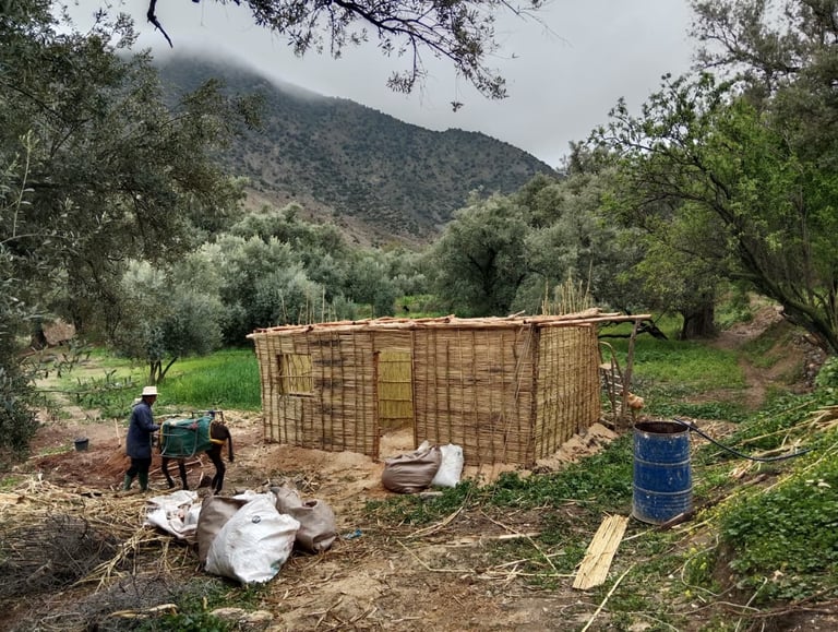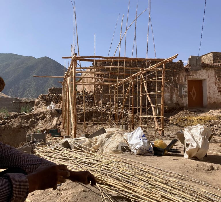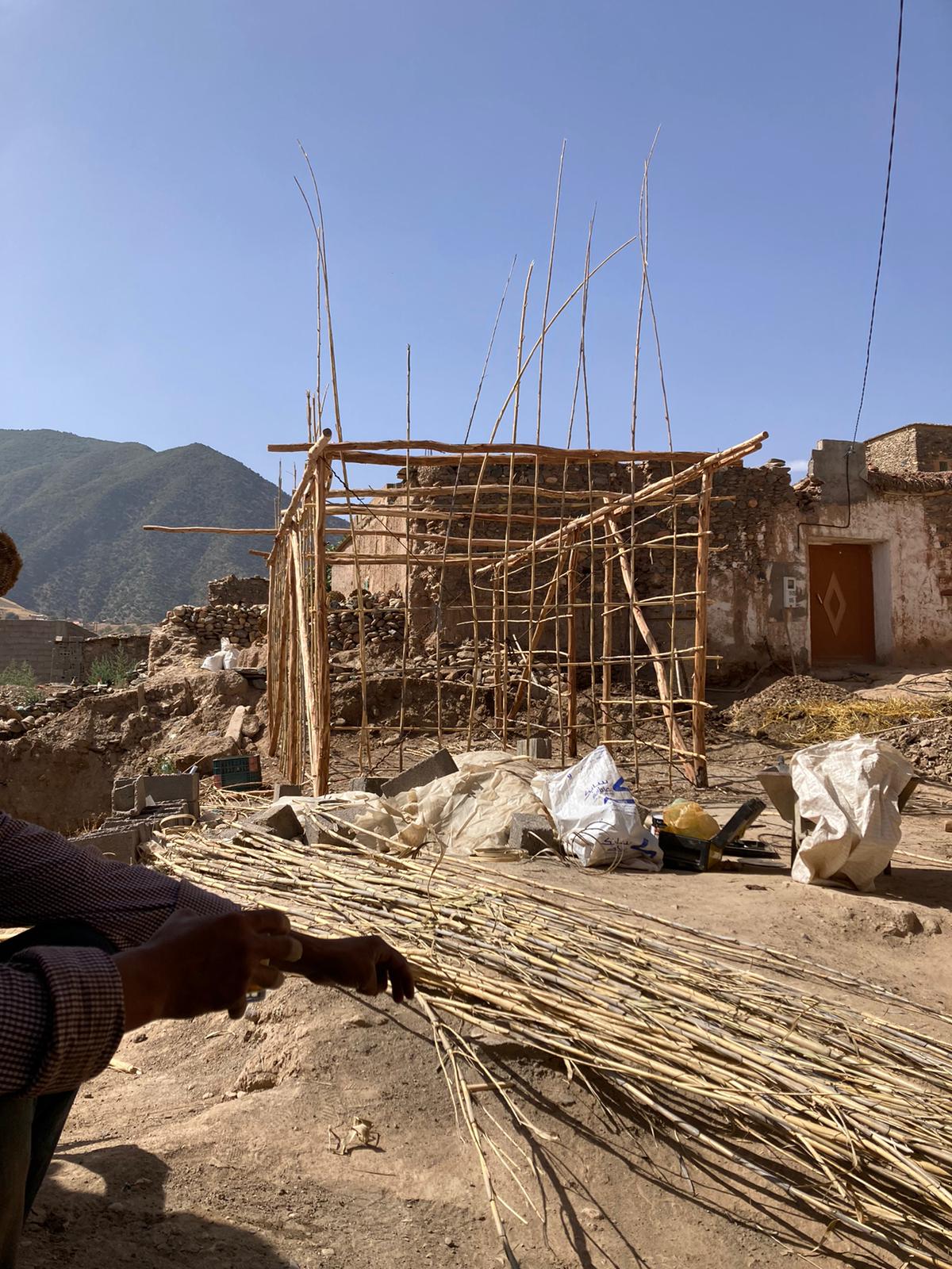 Douira en cours de construction par Amal Biladi après le séisme du 8 septembre 2023, Douar Aït Bourd, commune Amezmiz, Province Al Haouz