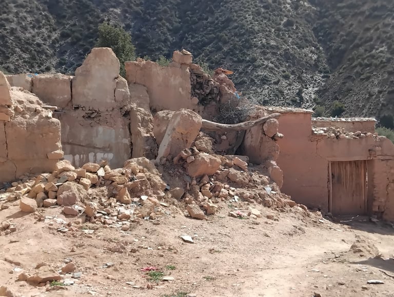 Maison détruite par le séisme du 8 septembre 2023, Douar Aït Bourd, commune Amezmiz, Province Al Haouz