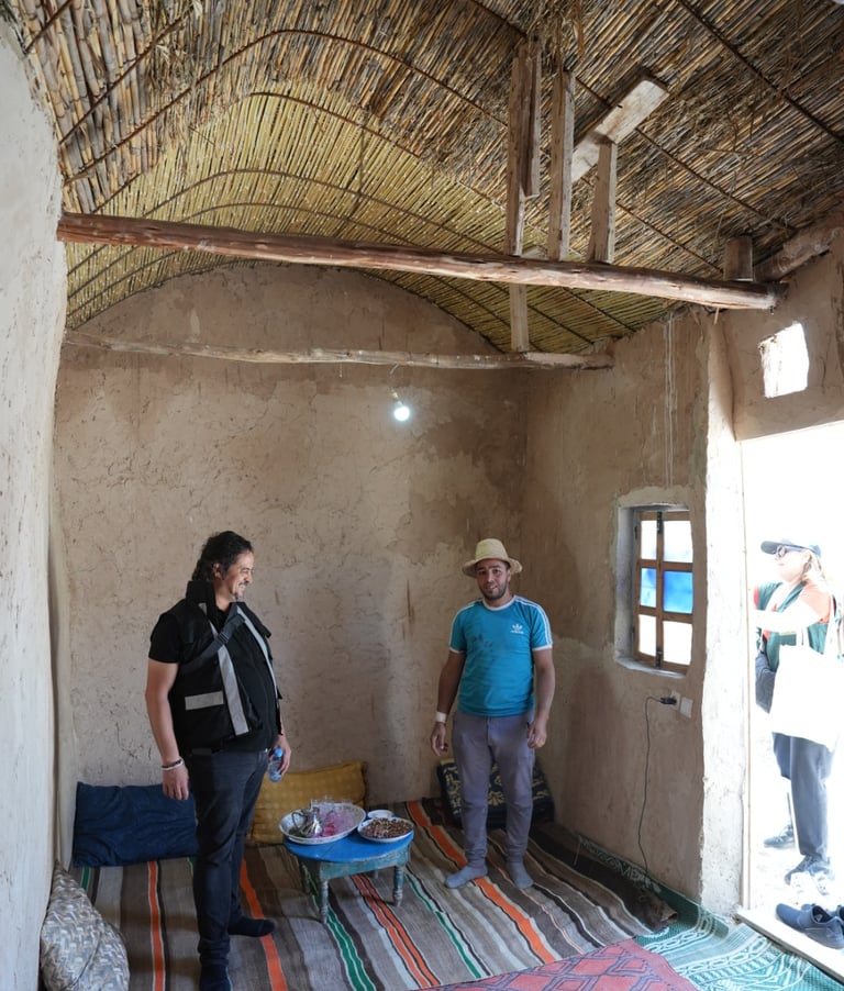 Après le séisme, les tentes et les containers se sont révélées inadaptées, notamment face à l’automne et à l’hiver. Amal Biladi a donc développé la douira, un habitat d’urgence de 18 m², léger, hygrothermique et construit à partir de matériaux locaux. Elle peut être réalisée en 8 à 10 jours, sans démarche administrative, sur un terrain appartenant à la famille sinistrée. Sa structure souple, en eucalyptus, roseaux, paille, terre et torchis, la rend résistante au vent et adaptée aux répliques sismiques.