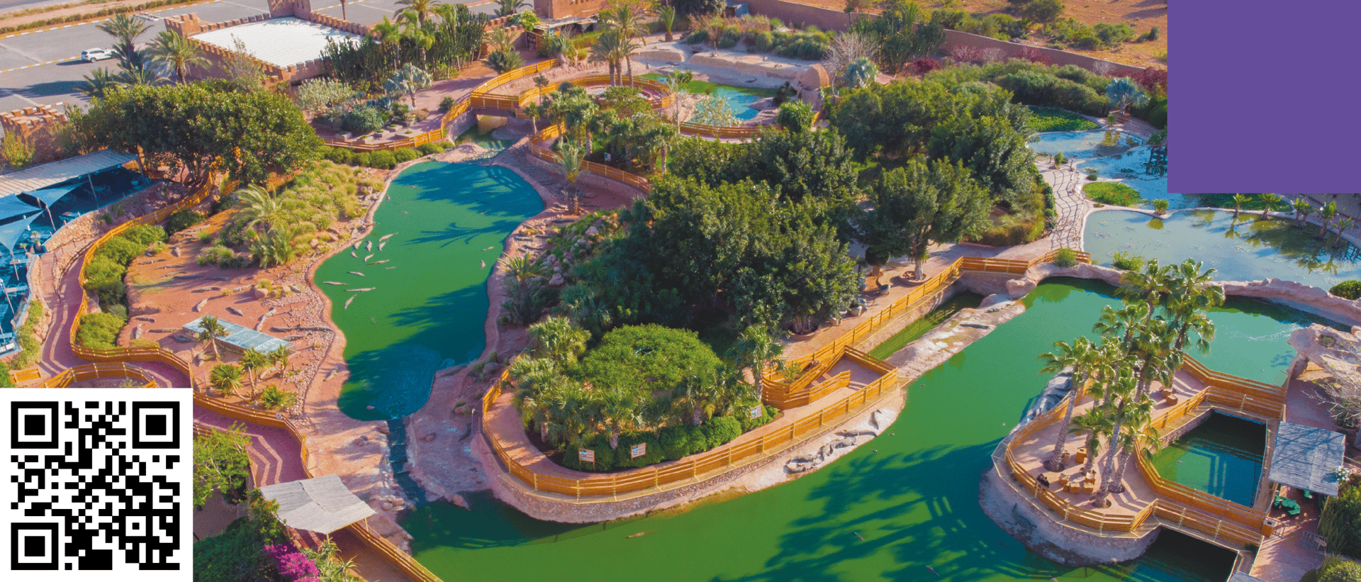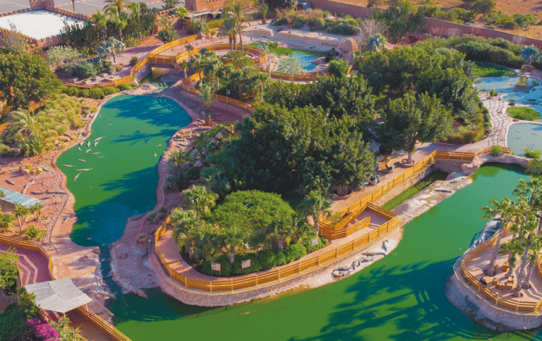 Crocoparc Agadir abrite plus de 350 crocodiles, des iguanes et tortues géantes à observer au cœur d’un jardin botanique. La balade traverse une cascade, une grotte aux trésors, un jardin des cactus, une grotte aux serpents et une maison des ouistitis. Le parc propose aussi des aires de jeux pour enfants, un restaurant et une boutique de souvenirs.