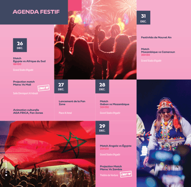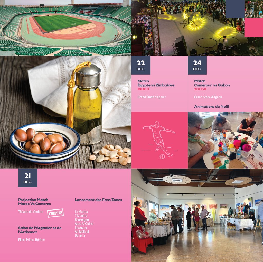 Découvrez le programme spécial des événements organisés dans le cadre de la Coupe d’Afrique des Nations 2025, avec une sélection d’animations, de fanzones et d’initiatives culturelles prévues à Agadir pour célébrer ce rendez-vous continental. 🔹Lire la suite🔹