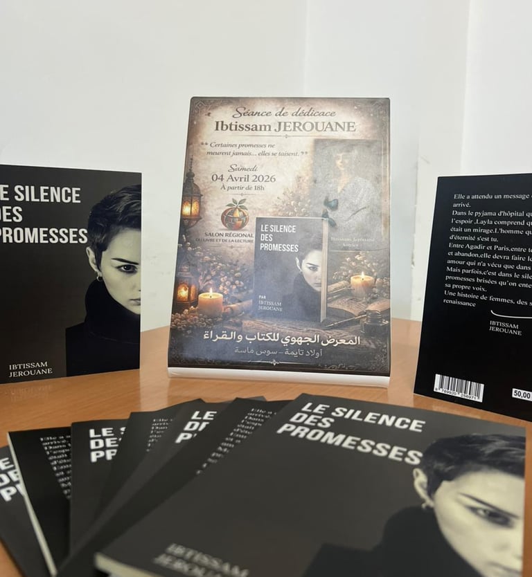 Le roman "Le Silence des Promesses" est disponible à la vente à l’international et à Agadir à la librairie Dar Alamane (Cité Dakhla).