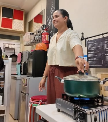 Il m’arrive d’organiser à LA CANTINE BY OWTS des soirées à thèmes : raclette, Halloween, fin d’année, soirée coréenne… L’idée est de réunir des personnes qui ne se connaissent pas pour partager un bon repas, échanger des idées et passer un moment amusant et convivial.