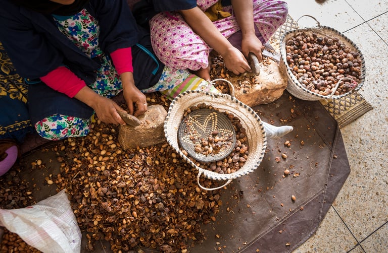 L'huile d’argan porte une dimension écologique, sociale et économique. Sa production, souvent assurée par des coopératives féminines, participe activement au développement durable de la région, offrant autonomie financière et valorisation du savoir-faire local.