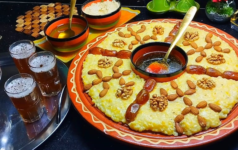 Au Maroc, la célébration du Nouvel An amazigh prend des formes diverses selon les régions. Elle est généralement marquée par des repas traditionnels, souvent à base de céréales, de légumineuses ou de produits du terroir. Certaines pratiques symboliques, comme l’inclusion d’un objet dans le plat pour porter chance à celui qui le trouve, sont encore observées dans plusieurs communautés.