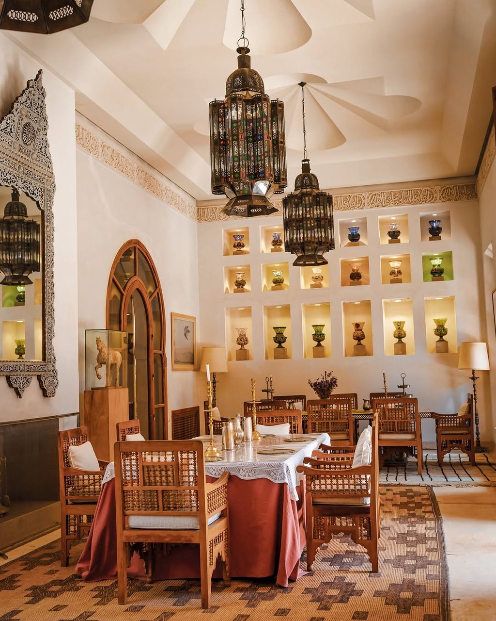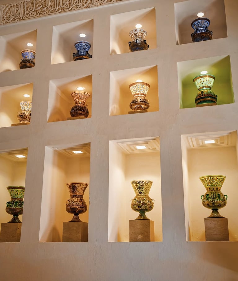 La visite ne saurait être complète sans une promenade dans les splendides jardins du musée, conçus comme un véritable havre de paix. Les bassins d'eau apaisants, les majestueux palmiers et les fontaines décoratives invitent à la contemplation et renforcent l'ambiance sereine du lieu.