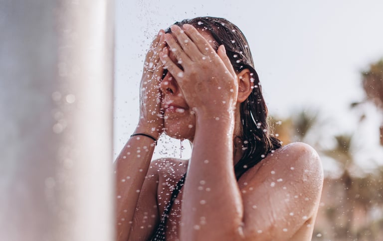 Dès votre retour, une douche tiède, puis un peu d’eau florale (rose, fleur d’oranger) ou un gel d’aloe vera feront des merveilles pour apaiser la peau.