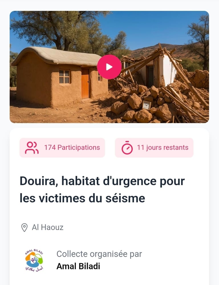 Faites un don ici : https://kiwicollecte.ma/fr/douira-habitat-durgence-amal-biladi