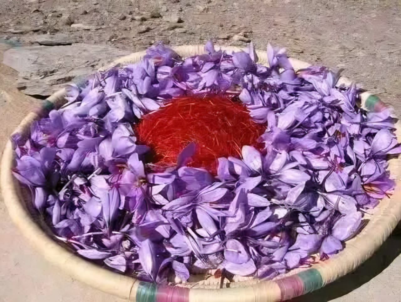 Après la cueillette, les filaments rouges (le safran) sont séparés de la partie violette des fleurs, puis laissés à sécher naturellement, également sans recours à aucune machine.