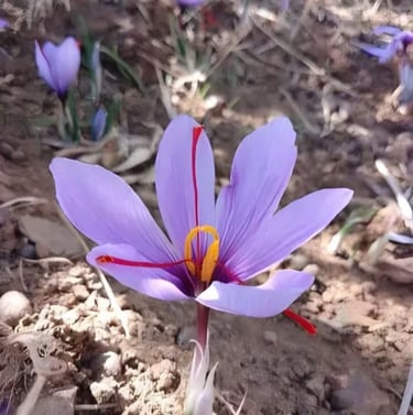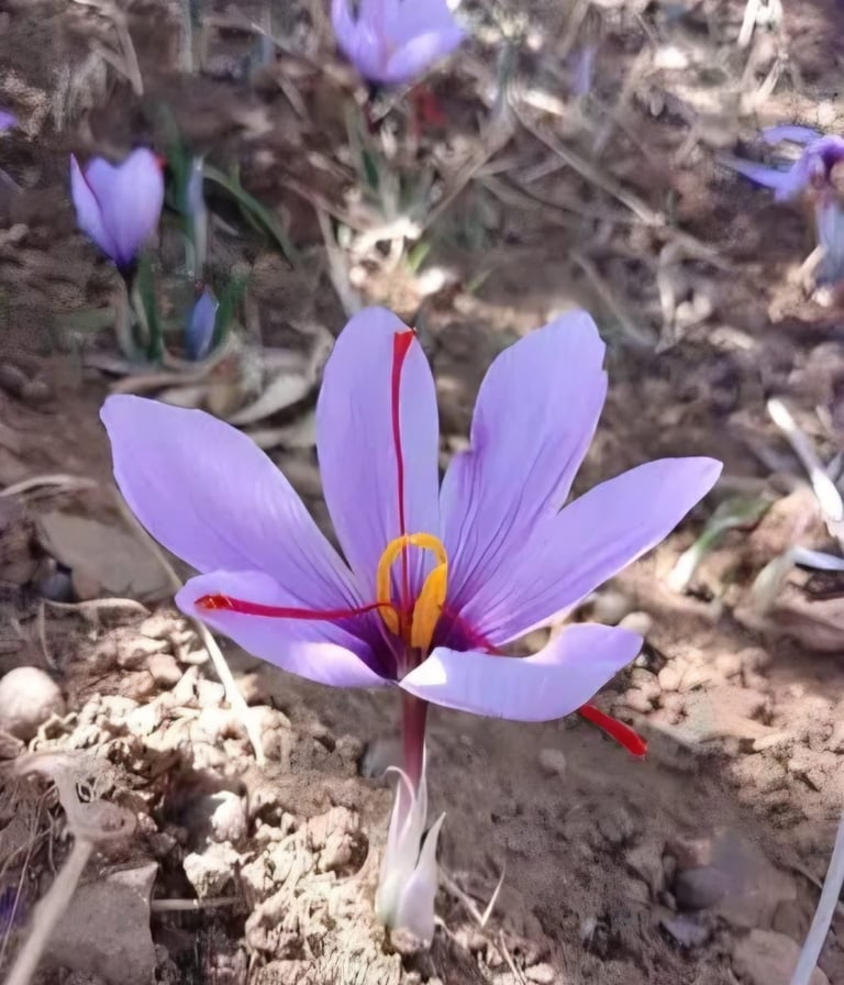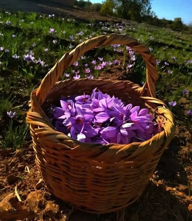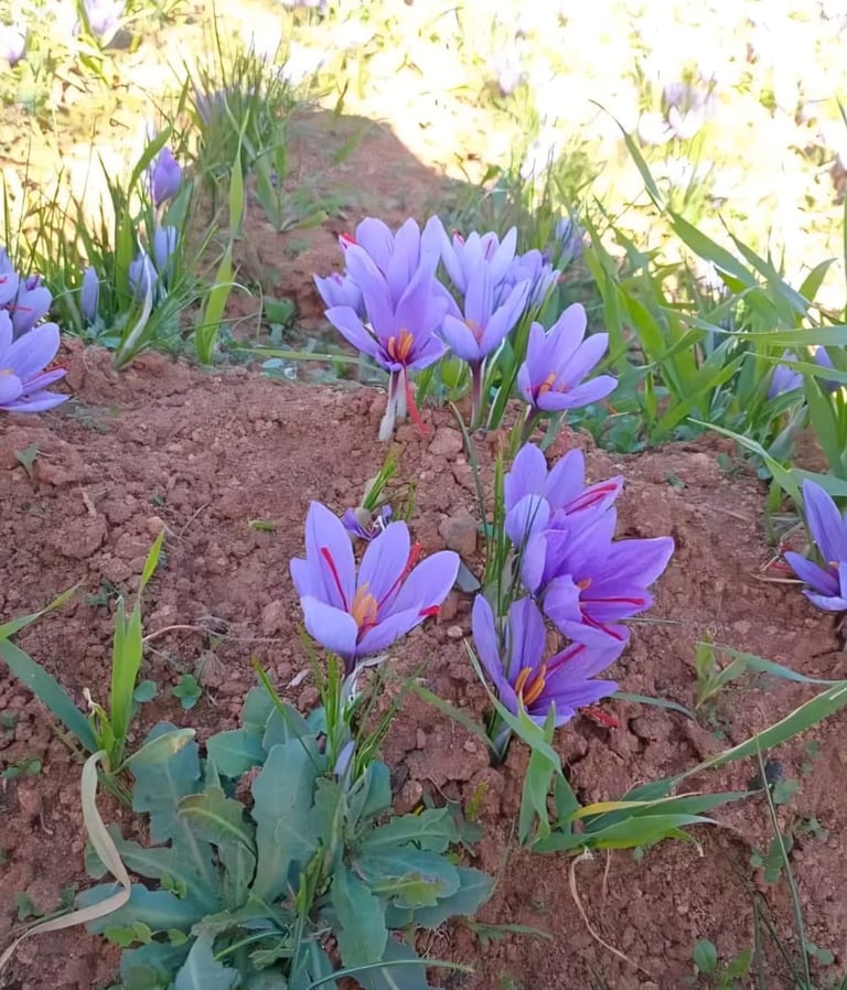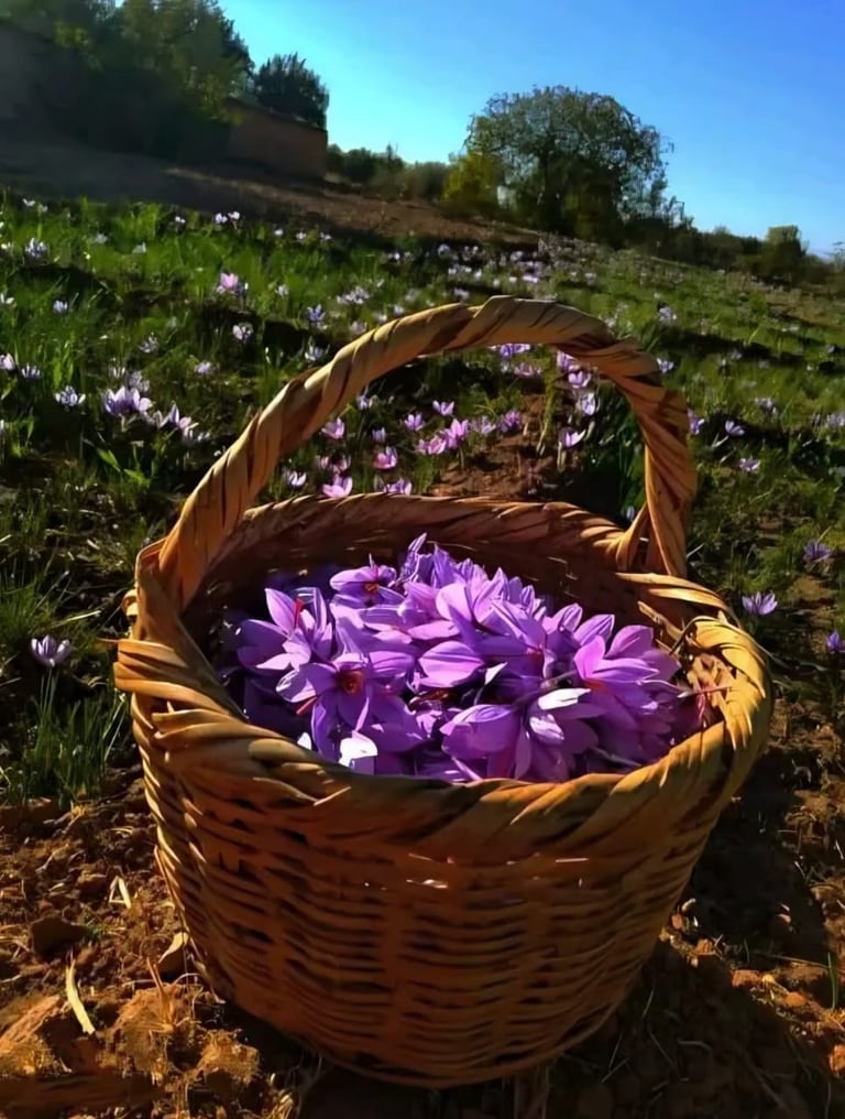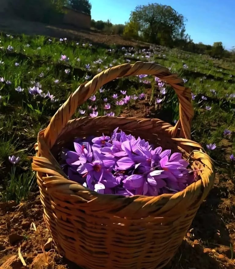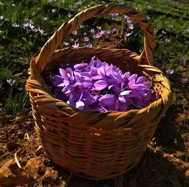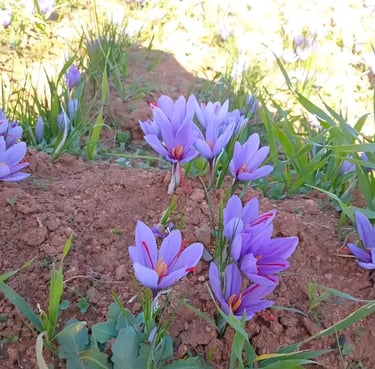 À partir de la mi-octobre, les fleurs de safran commencent à apparaître et la récolte s’étend jusqu’à la mi-novembre. Pendant cette période, les champs se couvrent de fleurs, et chaque journée de récolte dépend fortement des conditions climatiques.