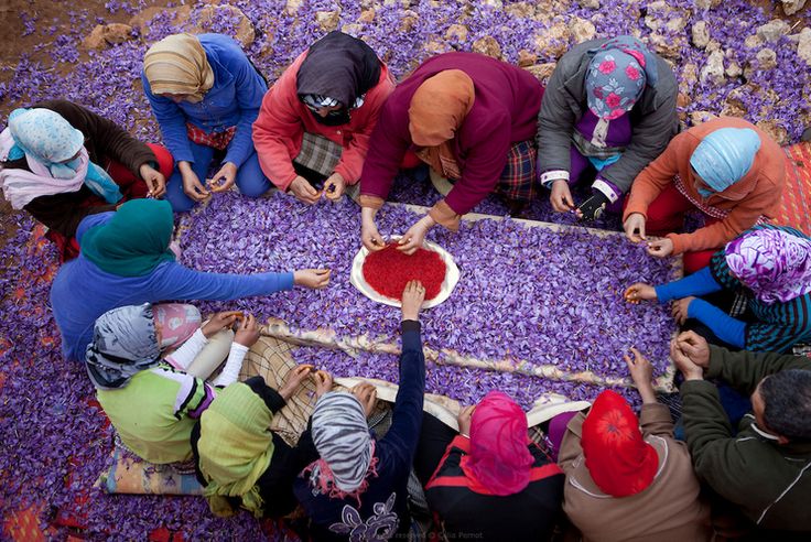 En moyenne, il faut récolter environ 150 fleurs pour obtenir un gramme de safran prêt à la vente. Chaque fleur ne contient que trois filaments rouges, la production de safran est très laborieuse et demande une grande précision, ce qui explique la valeur élevée de cette épice.