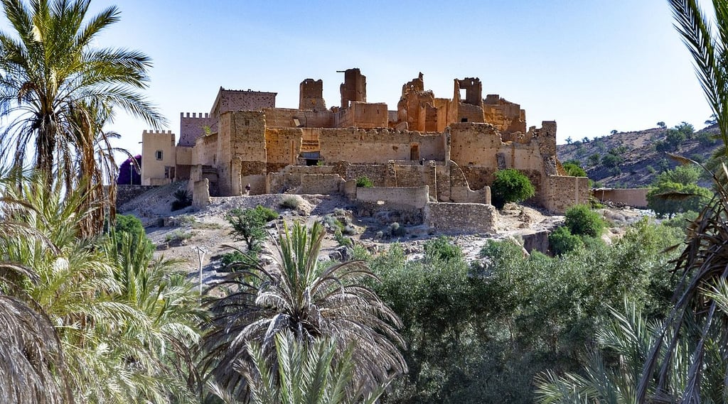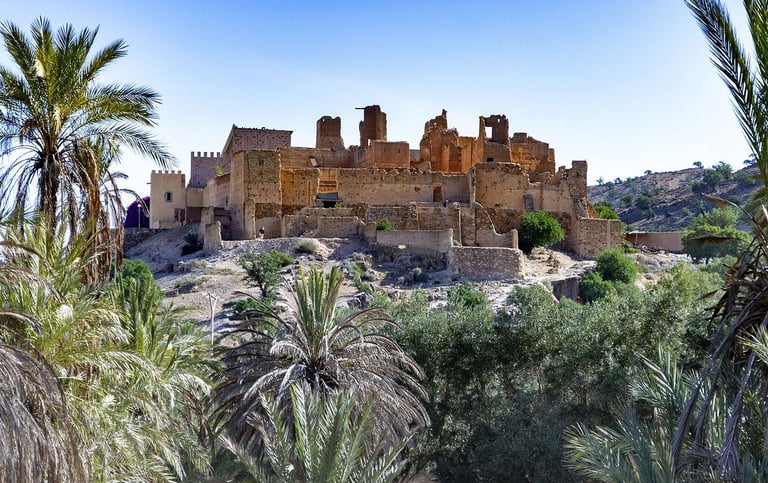 Dominant la palmeraie, la Kasbah de Tiout, aussi appelée Agadir Iblane, remonte à l’époque saadienne (XVIᵉ siècle).