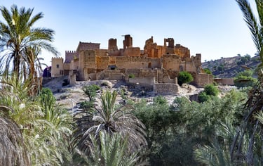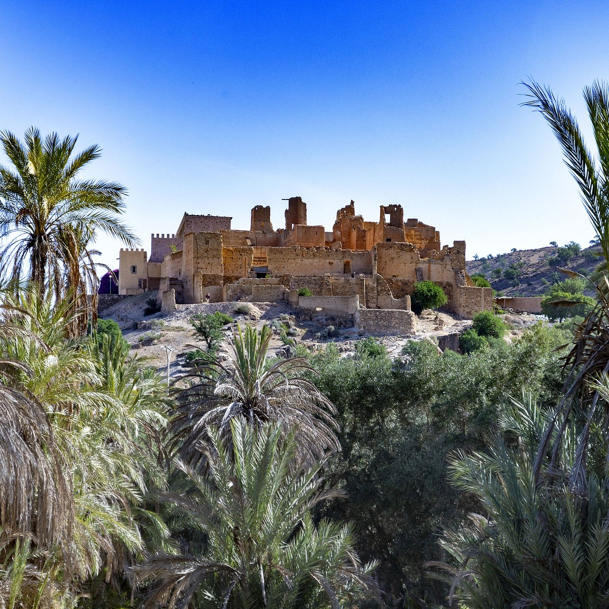 Ce site fortifié servait autrefois de lieu de repos aux princes et conserve encore ses dépendances : salles d’audience, entrepôts, chambres d’hôtes et même une ancienne prison. Depuis ses hauteurs, la vue sur la palmeraie est spectaculaire, offrant une lecture grandeur nature de l’harmonie entre l’homme et la nature.